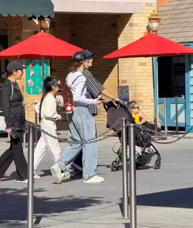 李承鉉一家五口度假,兒子扎辮子,小臉圓潤沒下巴比姐姐還像媽媽