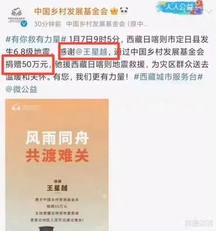 眾星馳援西藏!胡兵30w,王星越50w,成毅50w,賈玲的意外之舉~~