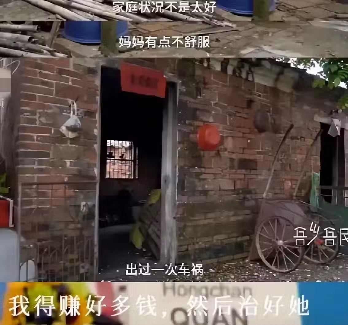 全紅嬋家裡有5個孩子,所以家庭條件不是很好。媽媽還出過一次車禍、全紅嬋就格外的努力。她用簡單的語言描述著自己的家庭,說我得賺好多錢、然後治好她。