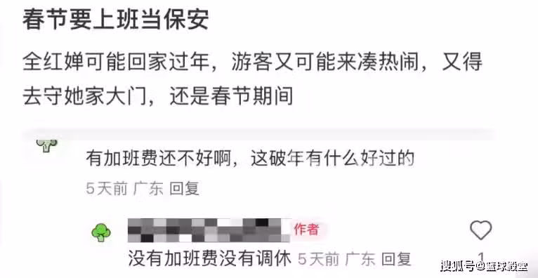 此時有個保安卻進行了吐槽。他們在社交網站上強調:又得去守她家大門了,還是春節期間。沒有加班費,沒有調休。之所以這樣,還是因為很多人湊熱鬧,他們必須要犧牲自己的家庭前往。也沒有辦法,如果沒有人守著,可能全紅嬋都無法過好年。再加上全紅嬋對於當地經濟提升,政府也都非常重視,這和全紅嬋本人是沒有任何關係的。