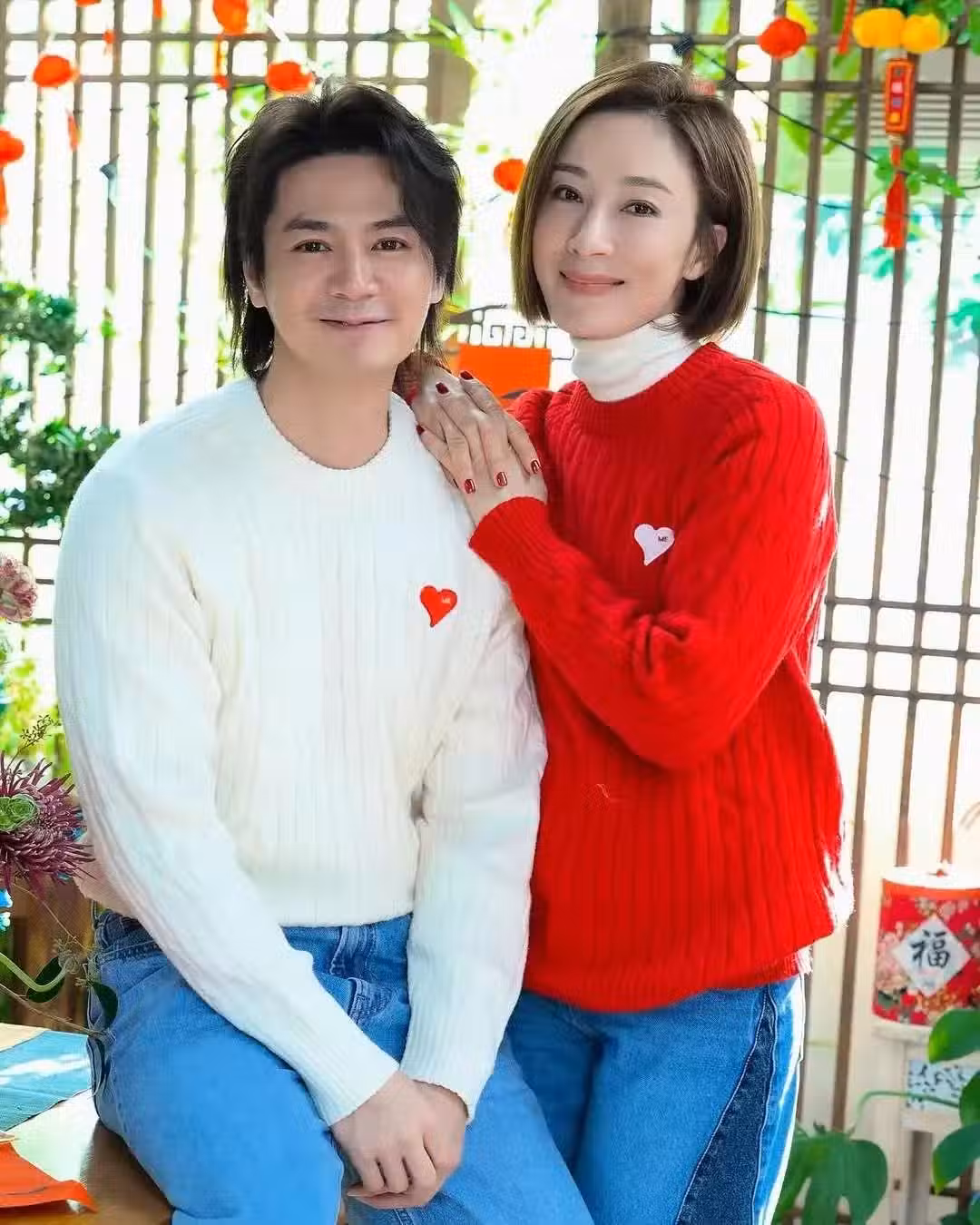 楊怡羅仲謙曬新年全家福,穿情侶裝恩愛甜蜜,一雙兒女顏值都好高