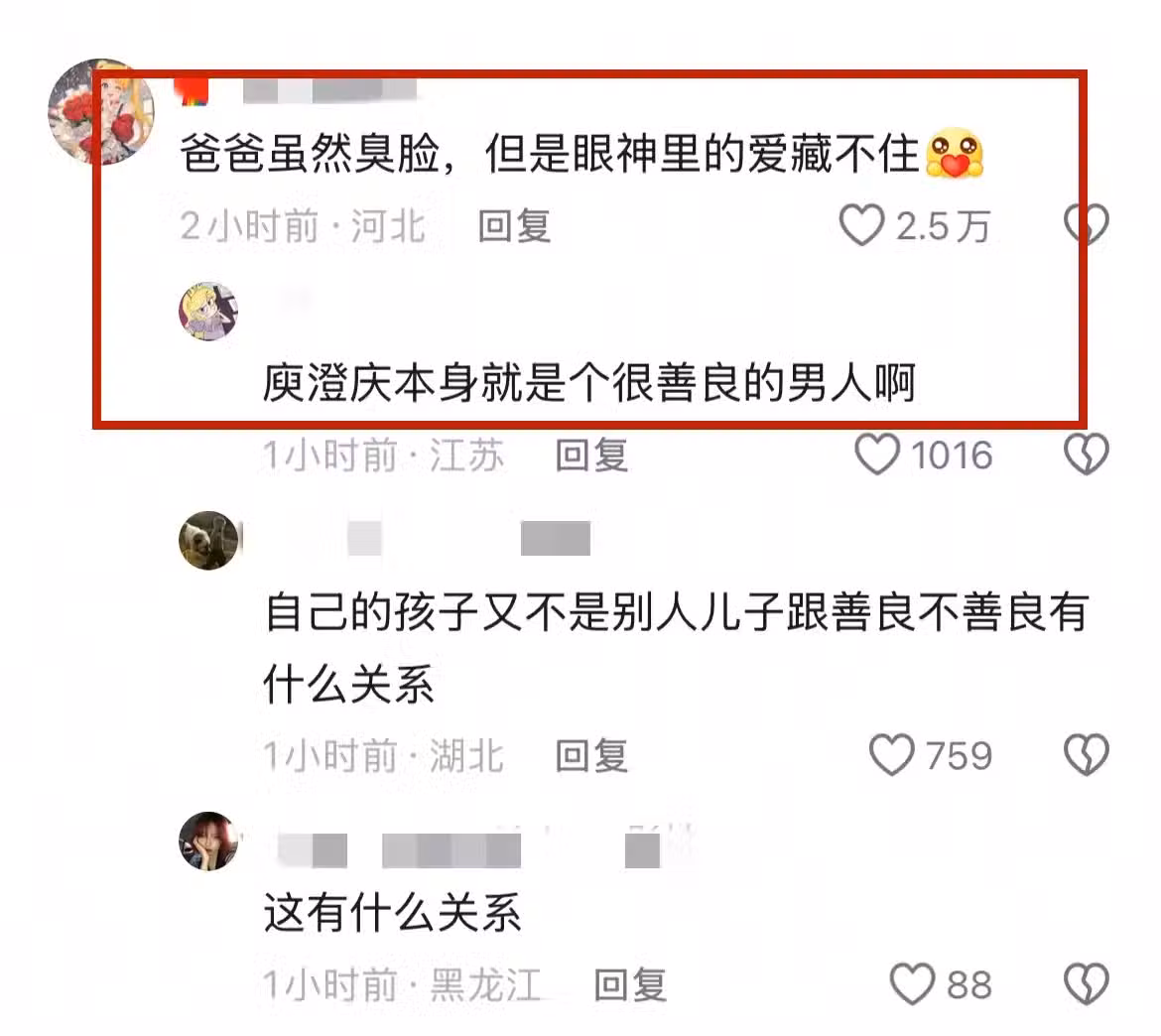 庾澄慶對於鏡頭並不是很感冒,所以日常鮮少於視頻帳號上分享動態,所以才會有這樣的態度,不過隨後,他的太對就有所緩和,也許是無奈,但更多的是溺愛,如果說話語能夠騙人,但眼神絕對不會。