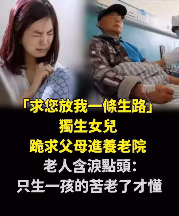 求您放我一條生路!獨生女兒「跪求父母進養老院」老人含淚點頭:只生一孩的苦,老了才懂……