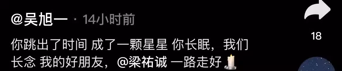 演員吳旭一於視頻帳號上分享了一則悲痛消息,並透露他的好友梁祐誠不幸去世。留言處,他並沒有透露其年齡,但根據其同學的年齡來推斷,他應該在27歲左右。