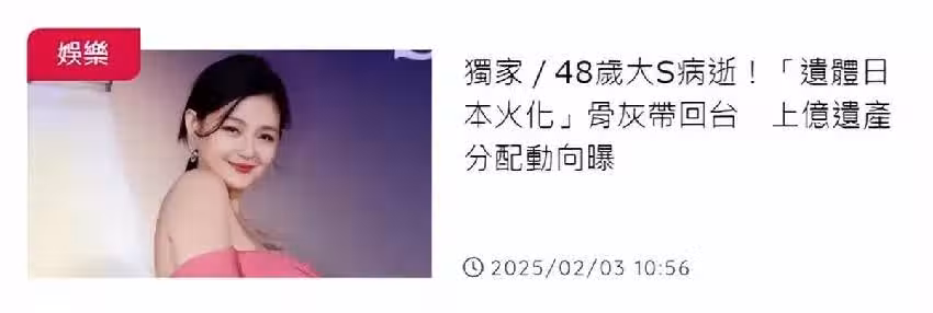 大S的離開讓所有人都震驚不已,她雖然有癲癇史,但是這幾年狀況一直都不錯,甚至為了養好身體一直處於息影的狀態,沒有接任何節目,沒想到還是發生了意外。