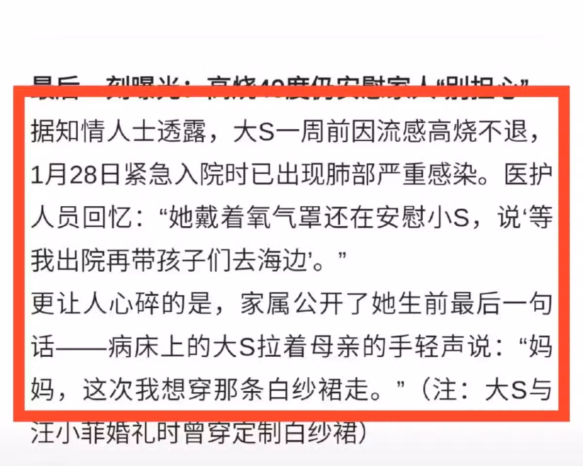 曝大S臨終細節,兒女丈夫在身旁,病床上握著母親的手