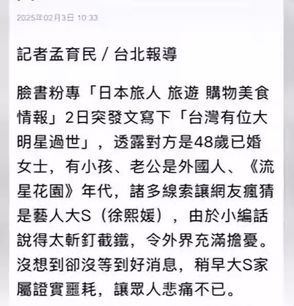 突發!48歲大S因病去世,S媽發聲,曾自曝命理師預言活不過50歲