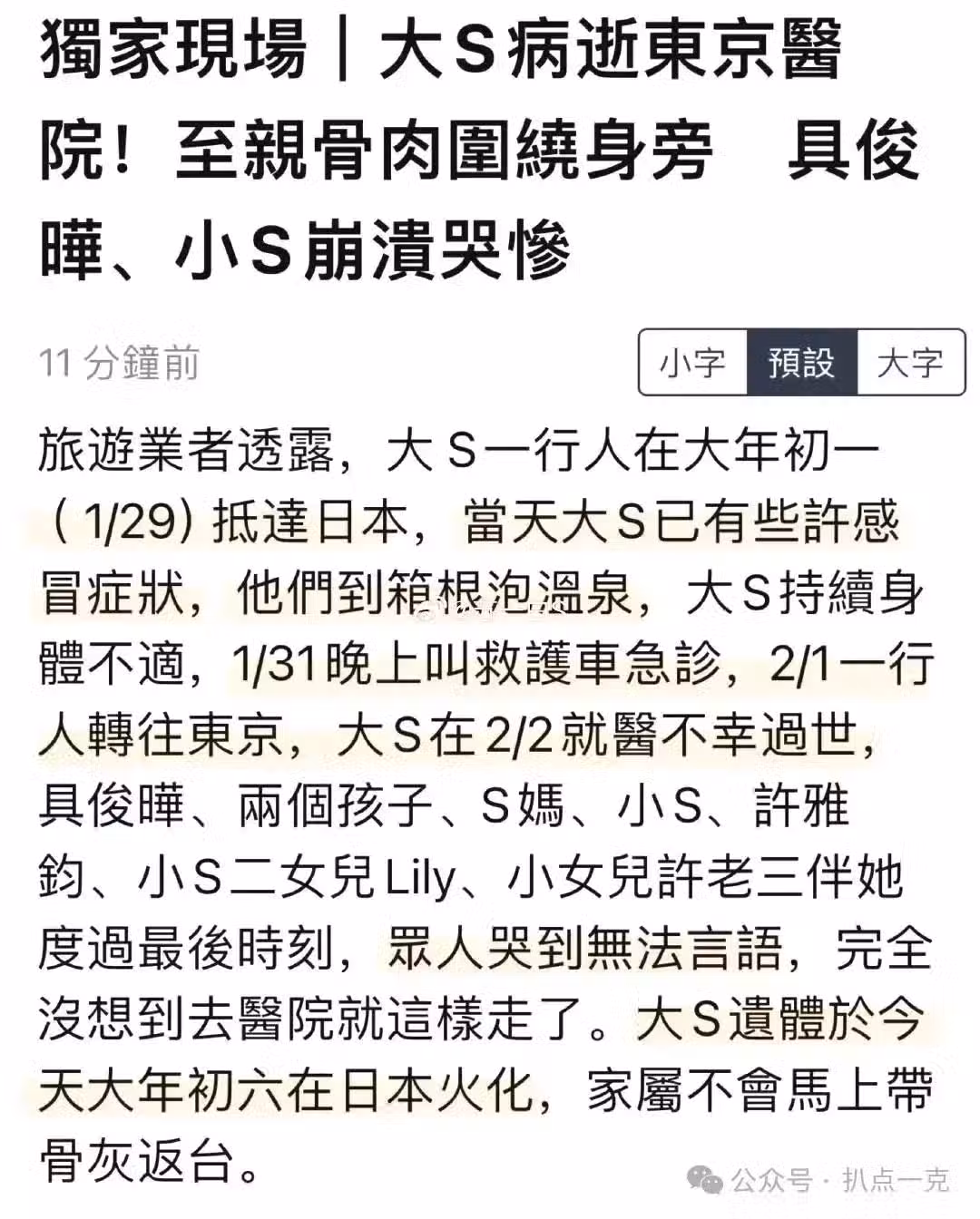 大S臨終細節被曝光!兒女都陪在身旁,病逝前一晚小S還勁歌熱舞