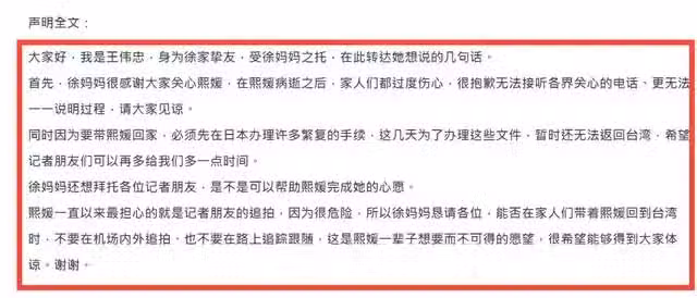 由於大S是在日本去世,所以細節以及臨終時的畫面,其家人並沒有透露分毫,但從好友的發文以及導遊的曝料中不難發現整個臨終畫面,可謂是催人淚下。