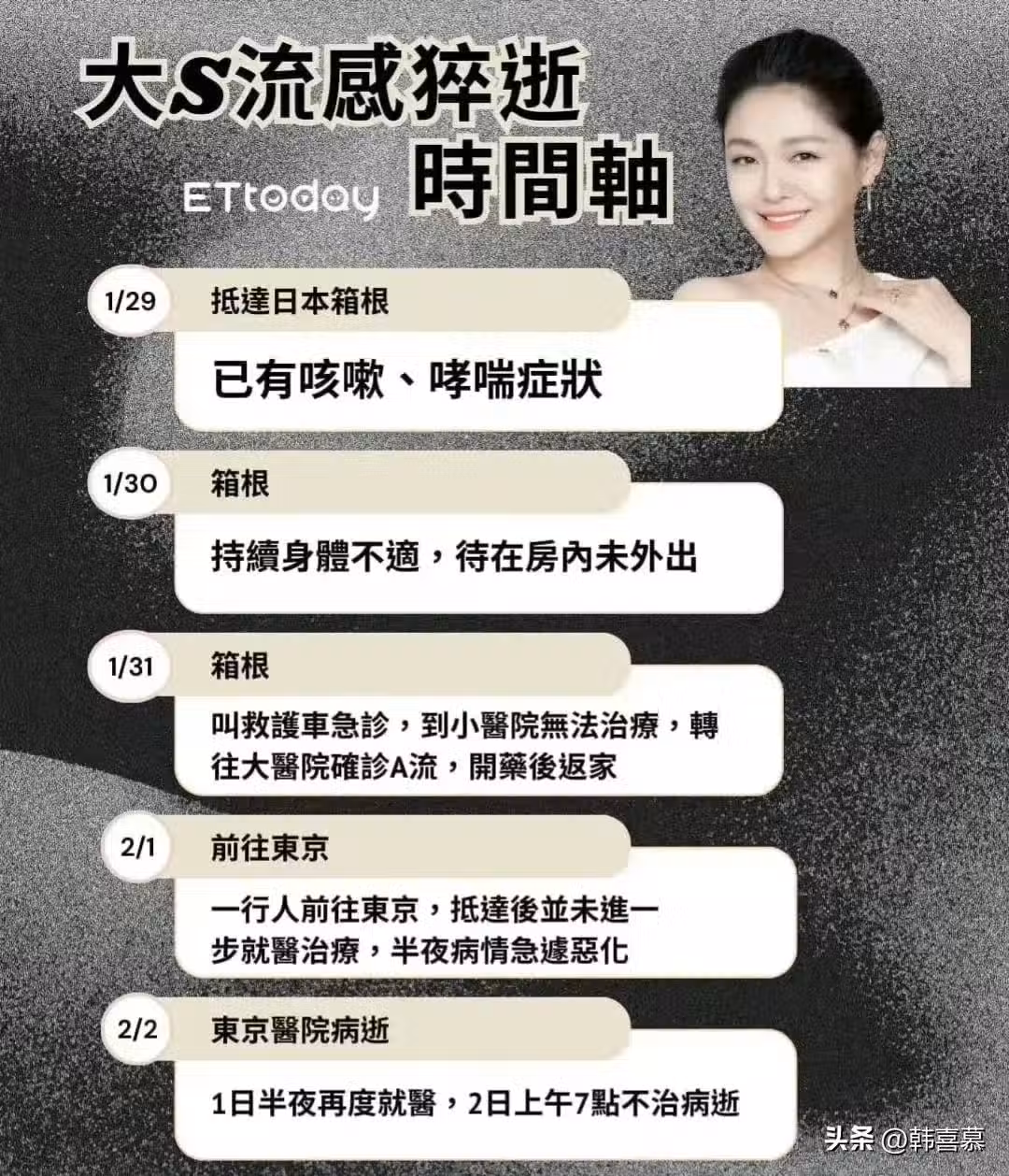 對於大S去世的原因,媒體報道稱,是因為大S在日本感染了流感並發肺炎,經過搶救無效去世的。