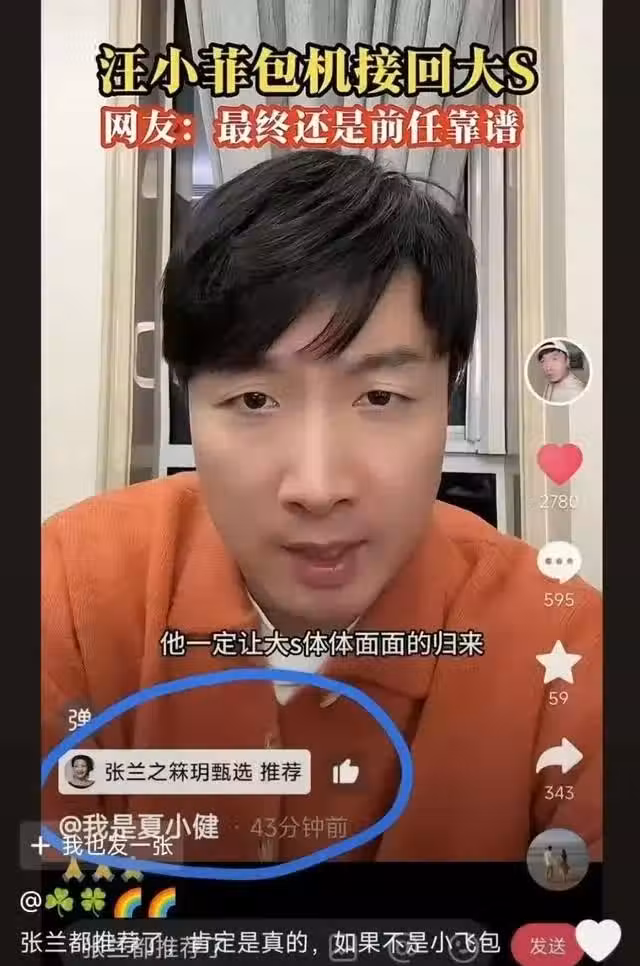 網絡一段影片,指出包機的想法是由汪小菲提出且出資,汪小菲的媽媽張蘭也按贊邀功。對此,小S不忍怒批:「人在做天在看,尤其我姐姐現在也在天上了,這種讓人無法容忍的謊言還要繼續出現嗎?」