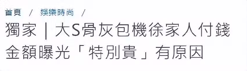 台媒則在小S發聲後爆料,運送大S骨灰的包機價格為69000元美金,摺合人民幣50萬。