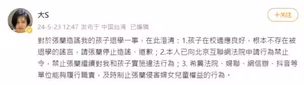 圖片來源:大S 微博