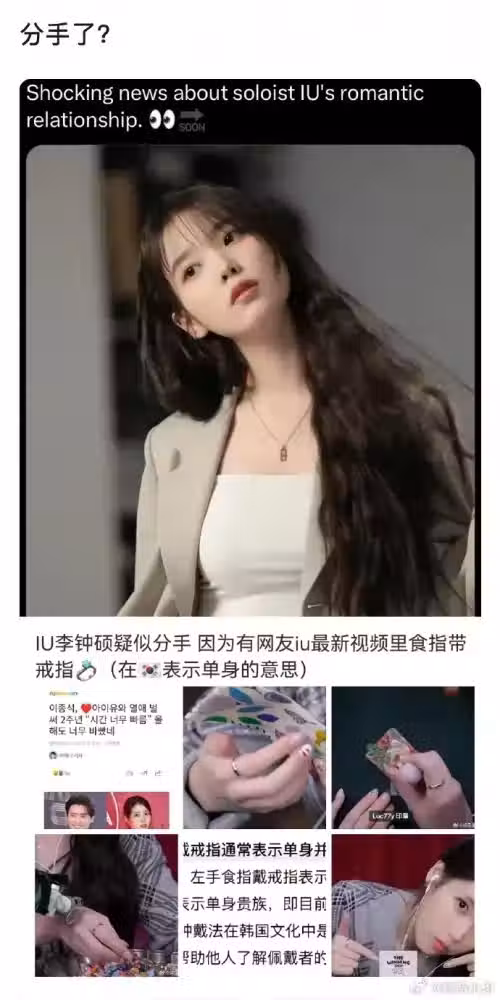 IU被爆跟李鍾碩分手!戒指「換位置戴」關鍵照遭流出,官方沒說話