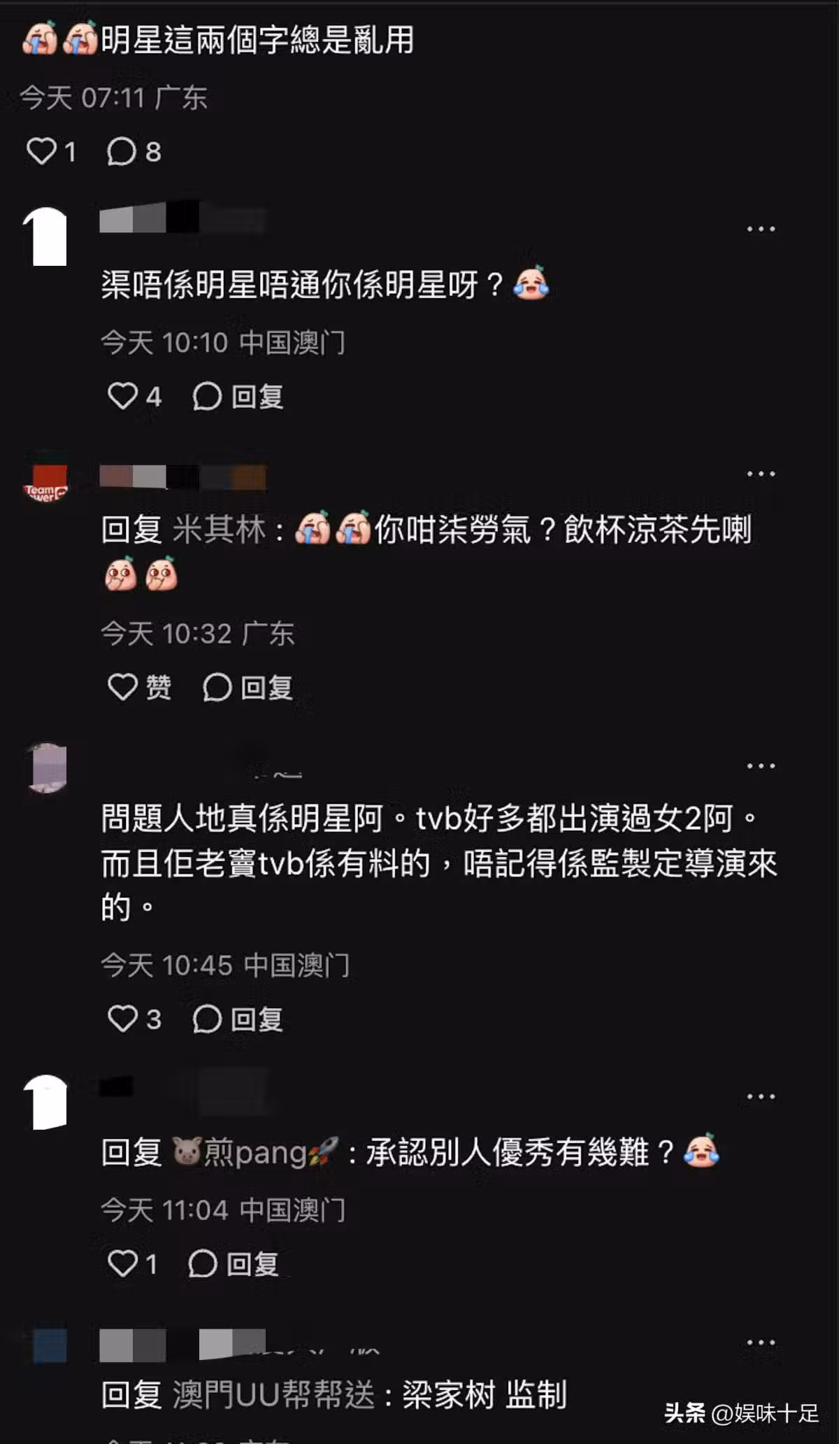 但不少網友立即力撐分享的網友,並開始回懟:「難道你是明星?自己承認別人優秀有這麼難嗎?」更有網友好心解釋:「她已經拍過TVB很多劇,確實也算是一位有點名氣的女明星。而且她爸爸梁家樹是香港TVB很有分量的監製。」還有網友補充說道:「她媽媽也很厲害的角色來的!」