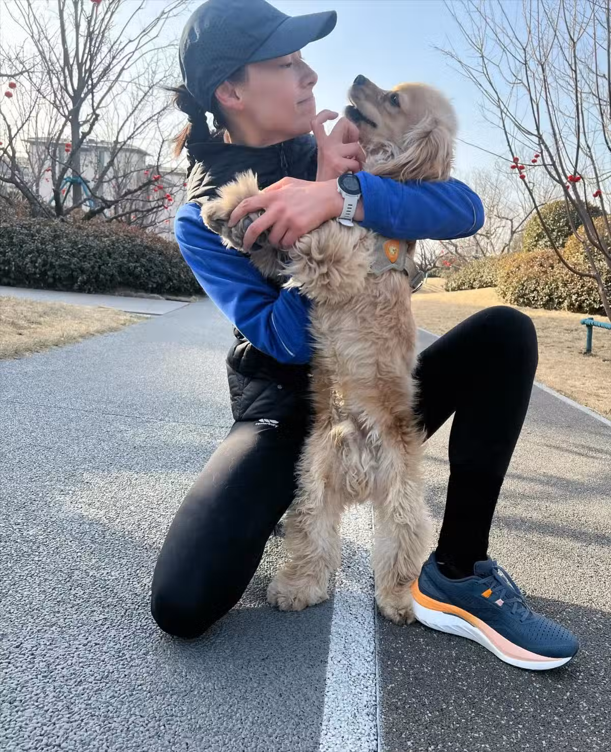梁洛施疑似定居北京生活,周末公園遛狗好愜意!網友:應該戀愛了