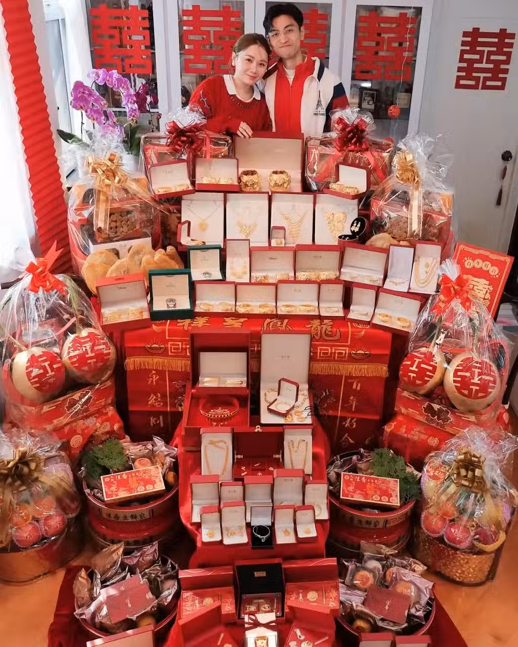香港女星過大禮!超多金飾從桌子鋪到地,排場誇張准岳母走不出來