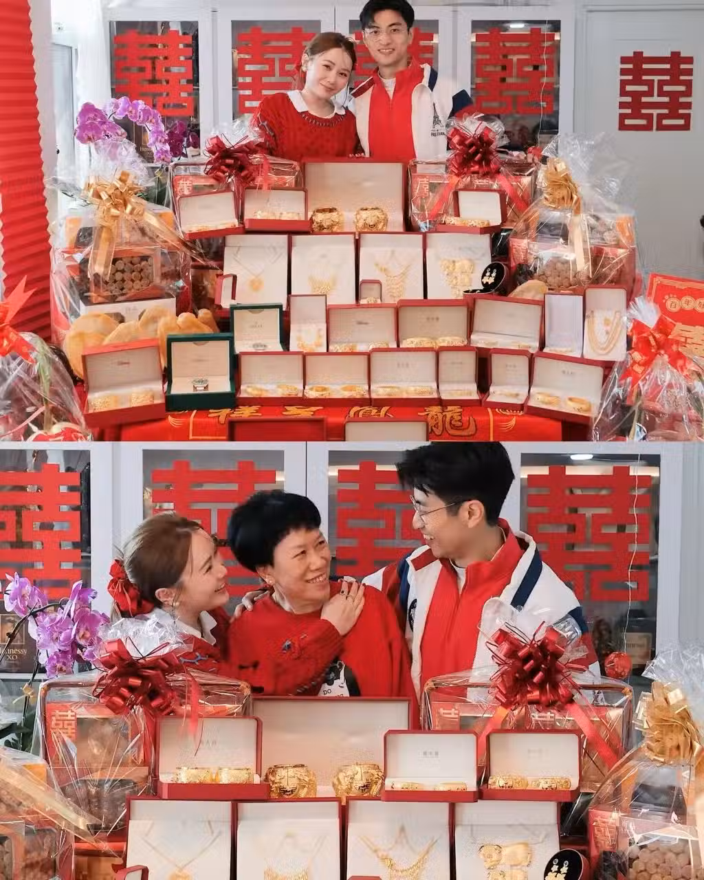 香港女星過大禮!超多金飾從桌子鋪到地,排場誇張准岳母走不出來