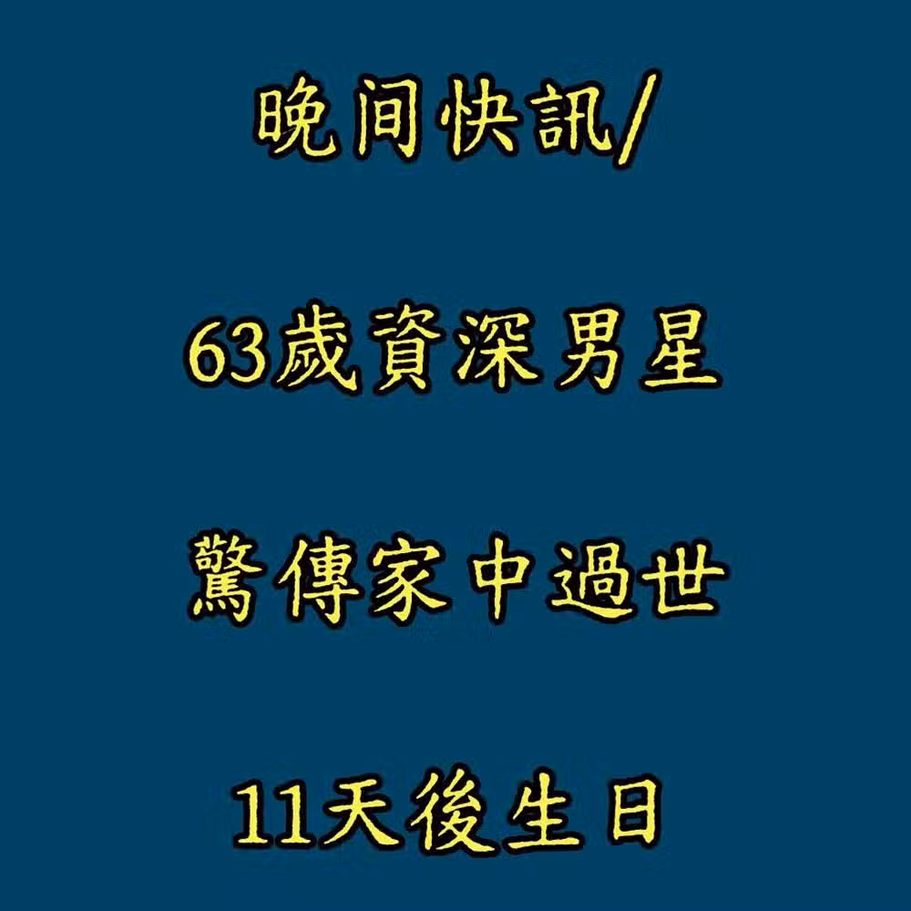 11天後生日!63歲資深男星「驚傳家中過世」...親友錯愕「才剛演出」