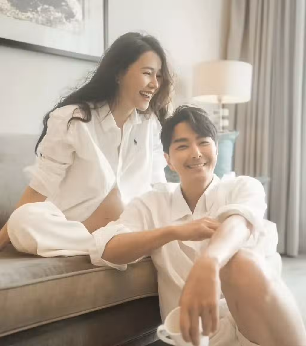 而這組寫真是黃翠如請朋友操刀,所以拍攝過程中是非常放鬆且歡樂的,從照片中不難發現,黃翠如的孕肚已經非常大,但是其四肢依舊很纖細,這種肥胎不肥人的狀態也是著實讓人羨慕。