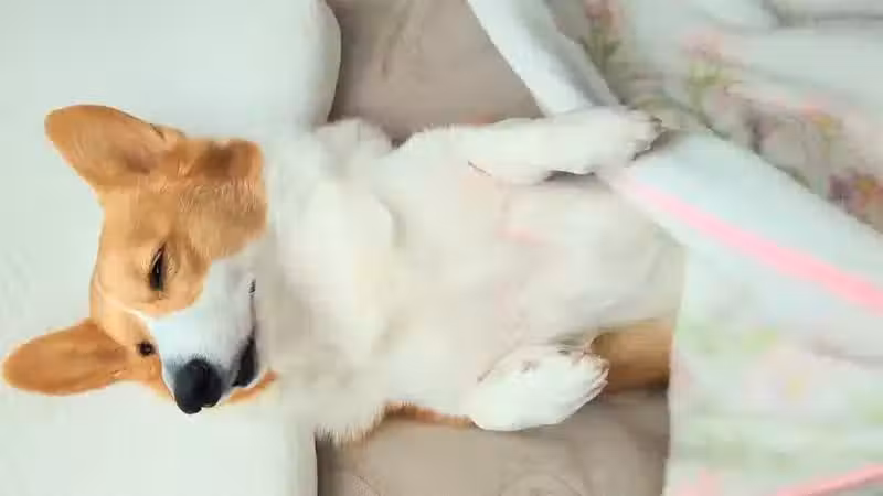 網友拍下《剛睡醒的柯基犬》腿短狗狗想要伸展一下的動作太可愛惹
