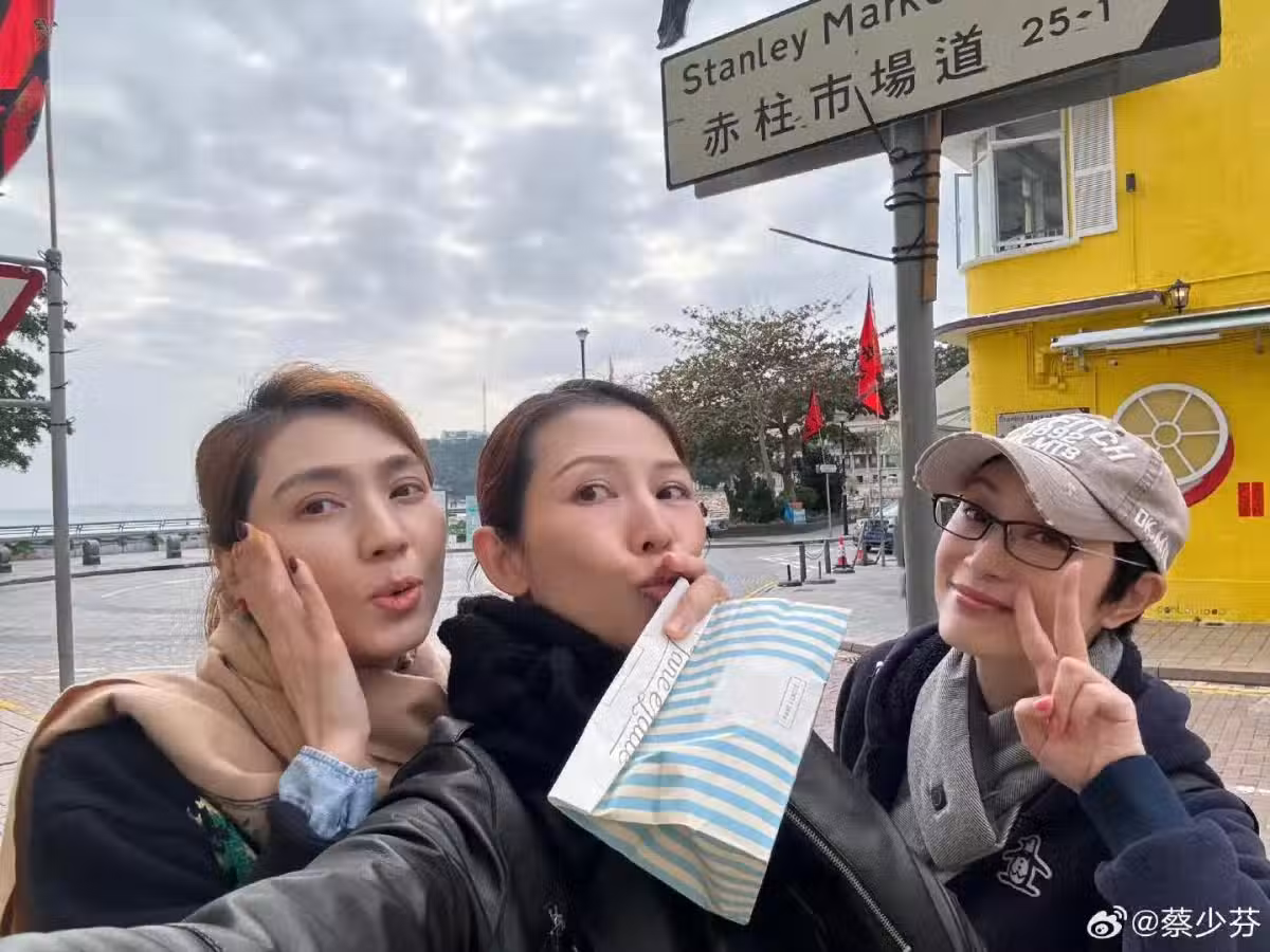 蔡少芬曬和陳法蓉洪欣相聚,閨蜜感情超好,自拍照跟路人視角一樣