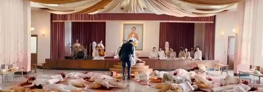 當然,最出圈的還是邪教靈修堂里,他揭開其偽善真容,並將所有愚昧教眾來了個連鍋端,在那一刻無關憤怒、無關替天行道,他自比神明,對人間發起了一場審判;既正義端莊,又邪氣凜然,這樣的男主角人設和電影基調,在內地影視作品裡很少能看到,原以為這只是一部黑幫片,沒想到還是一部哲學片,也難怪有觀眾願意二刷甚至三刷。