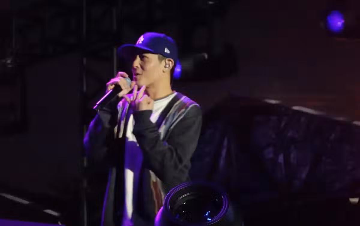 陳冠希參加音樂節,和一位日本動作片女星合影,耳朵紅了,看起來很開心