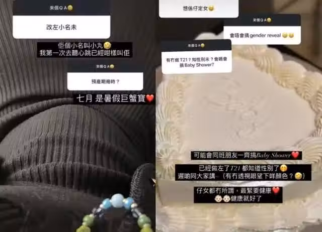 陳詩欣當日公布懷孕喜訊,亦提到經過了3年的努力,終於1+1=3:「還記得陳生說想我永遠做一個開心的小朋友,恭喜你,你現在有多一個啦!」