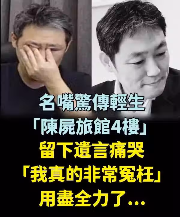 名嘴驚傳輕生「陳屍旅館4樓」留下遺言痛哭「我真的非常冤枉」:用盡全力了