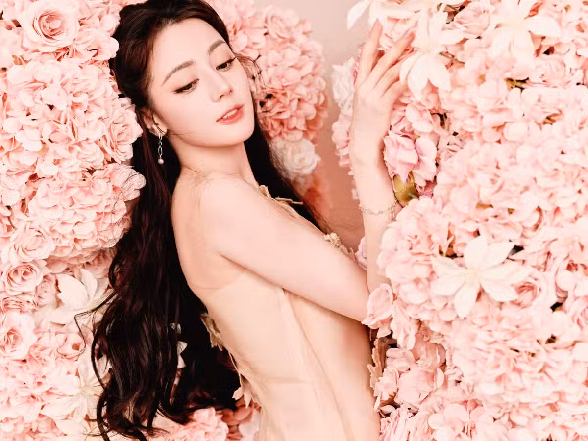 迪麗熱巴工作室曬出了一組她的最新造型圖。迪麗熱巴身穿身穿透視金色禮裙,以花為翼大秀身材曲線,皮膚白皙展現絕美側顏。