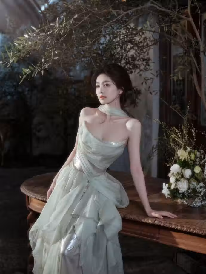 近日,白鹿一組穿淡綠色紗裙的寫真釋出,極具古典氣質,溫柔恬淡。白鹿的這組淡綠色紗裙寫真確實令人驚艷!她身穿淡綠色紗裙,膚色白皙,眼神溫柔,整體造型充滿了古典氣質與恬淡美感。