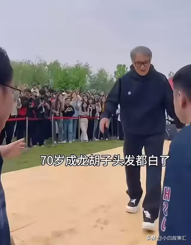 70歲成龍現身某高校 頭髮全白 走路需要攙扶 網:一代巨星也老了
