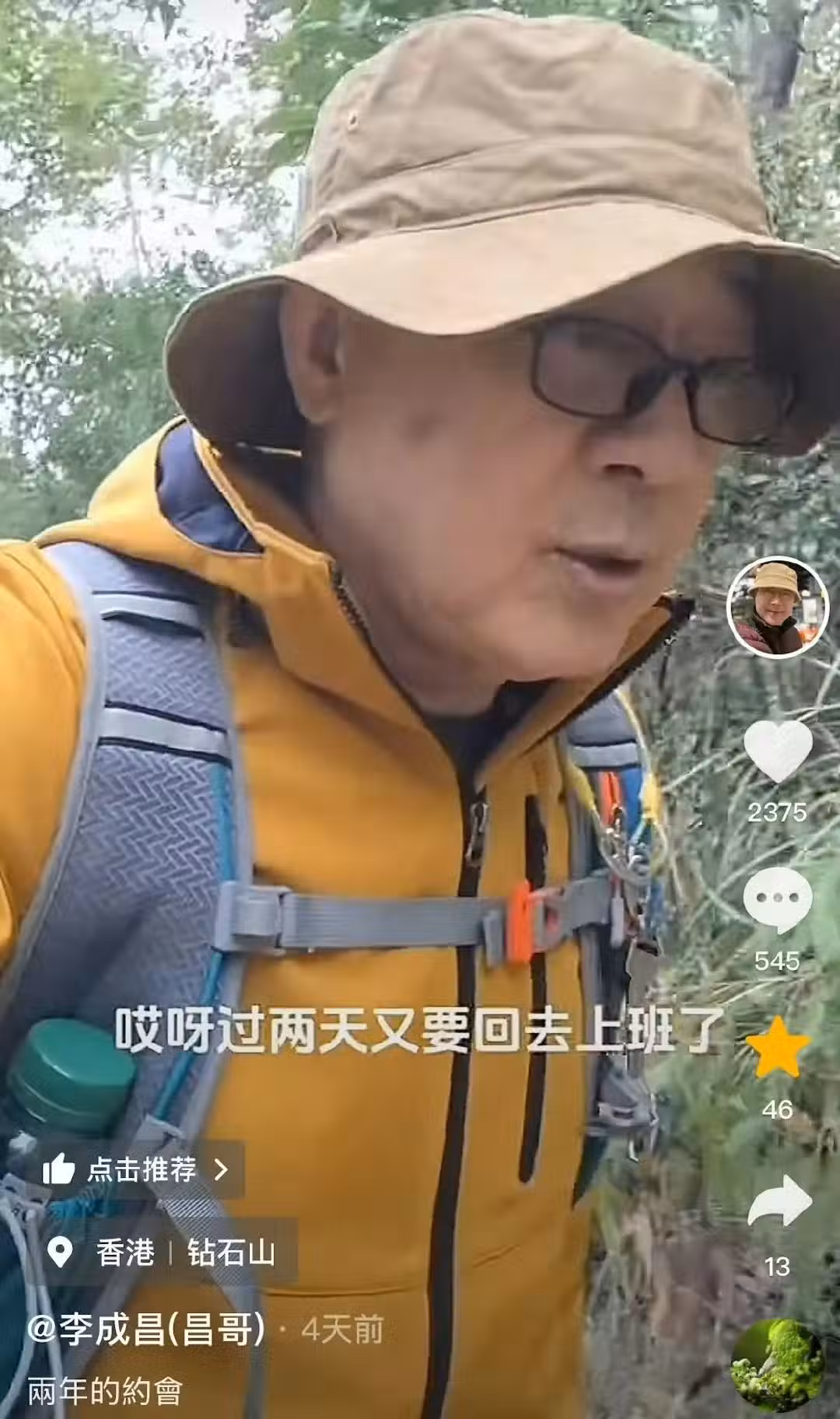 和過往一樣,李成昌依舊戴著一副眼鏡,頭上還有個漁夫帽,看來為了爬山,李成昌也是做足了準備工作,背上的書包里想必也是裝滿了補給品。