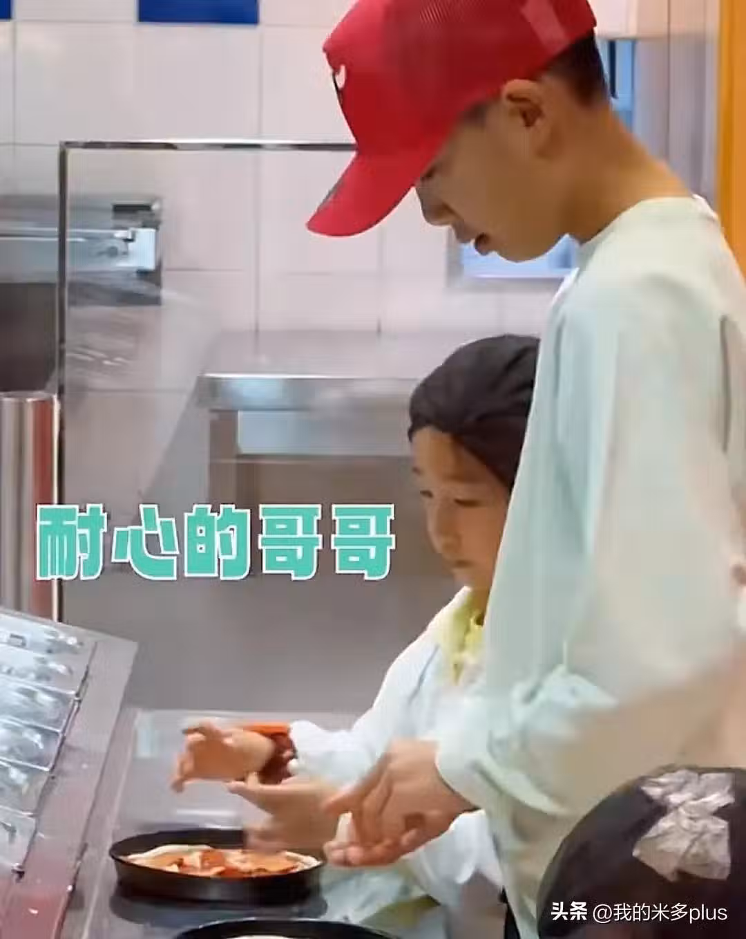 還有小朋友體驗做披薩的環節,應采兒根本不用自己看孩子,帶娃的任務都交給Jasper,哥哥對老弟很有耐心,一步步帶著HOHO完成製作,一大一小同框好有愛。
