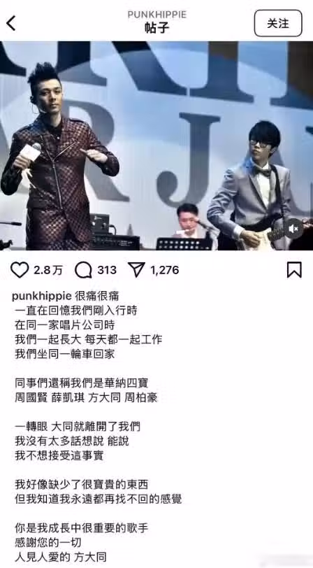 李榮浩悼念方大同:「才華橫溢,溫柔和善,一路走好!」