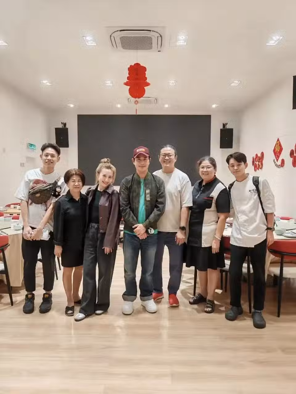 54歲鄭嘉穎出國度假,和老婆到餐廳吃飯,打扮帥氣,身上沒有老態