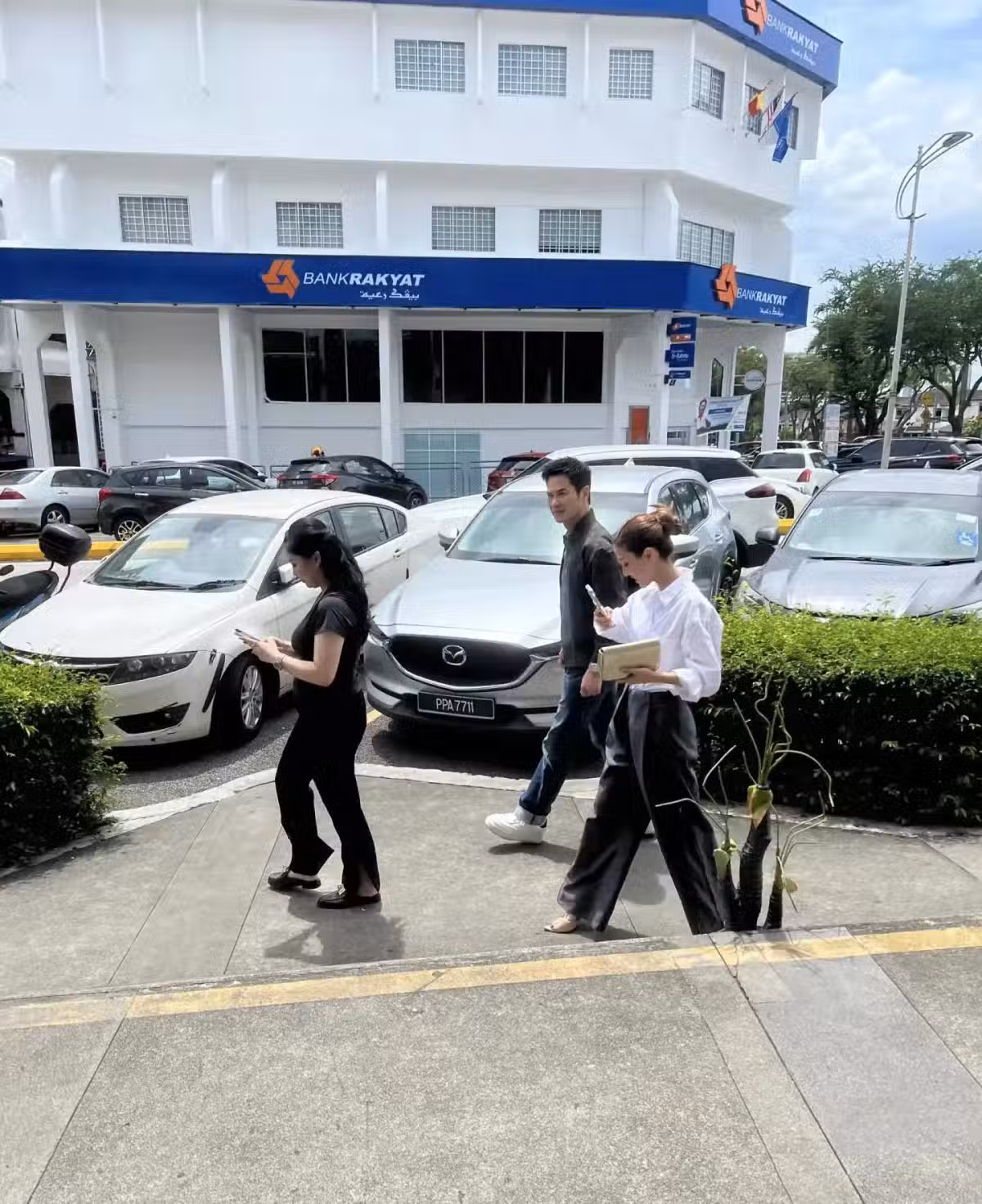 陳凱琳的打扮偏向白領上班族風格,上半身穿了一件白襯衫,下半身穿了一條灰色寬鬆休閒褲。她看起來很瘦,皮膚很白,狀態挺好的。