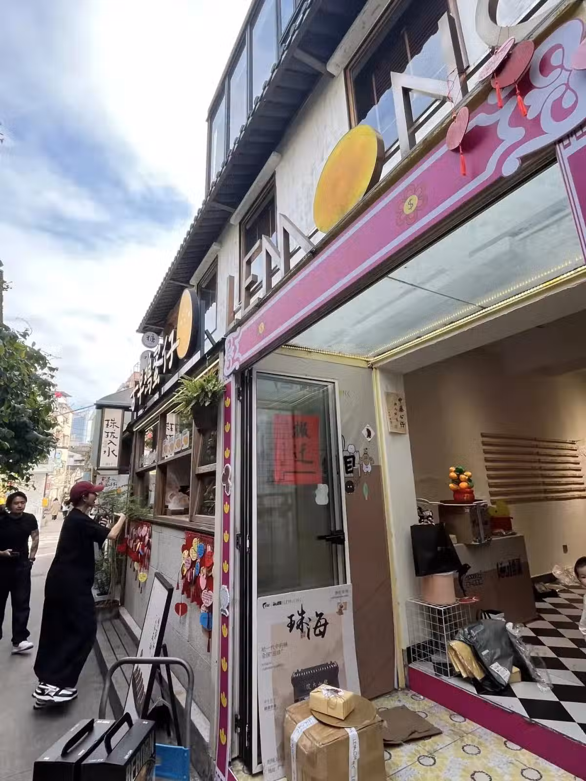 她在窗口和老闆溝通,完全沒有高高在上的架子,老闆認出她是明星之後,請求一起拍合照,她欣然應允了!--------