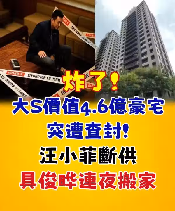 炸了!大S價值4.6億豪宅突遭查封!汪小菲斷供、具俊曄連夜搬家!