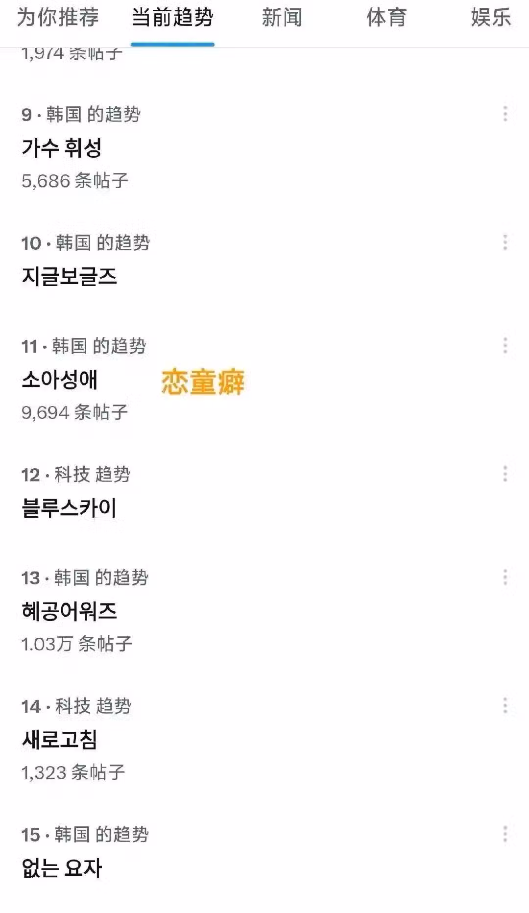 現在的韓國娛樂圈,簡直是「地震級」崩塌。 「戀童癖」這個字眼,也很快衝上韓網的熱搜。