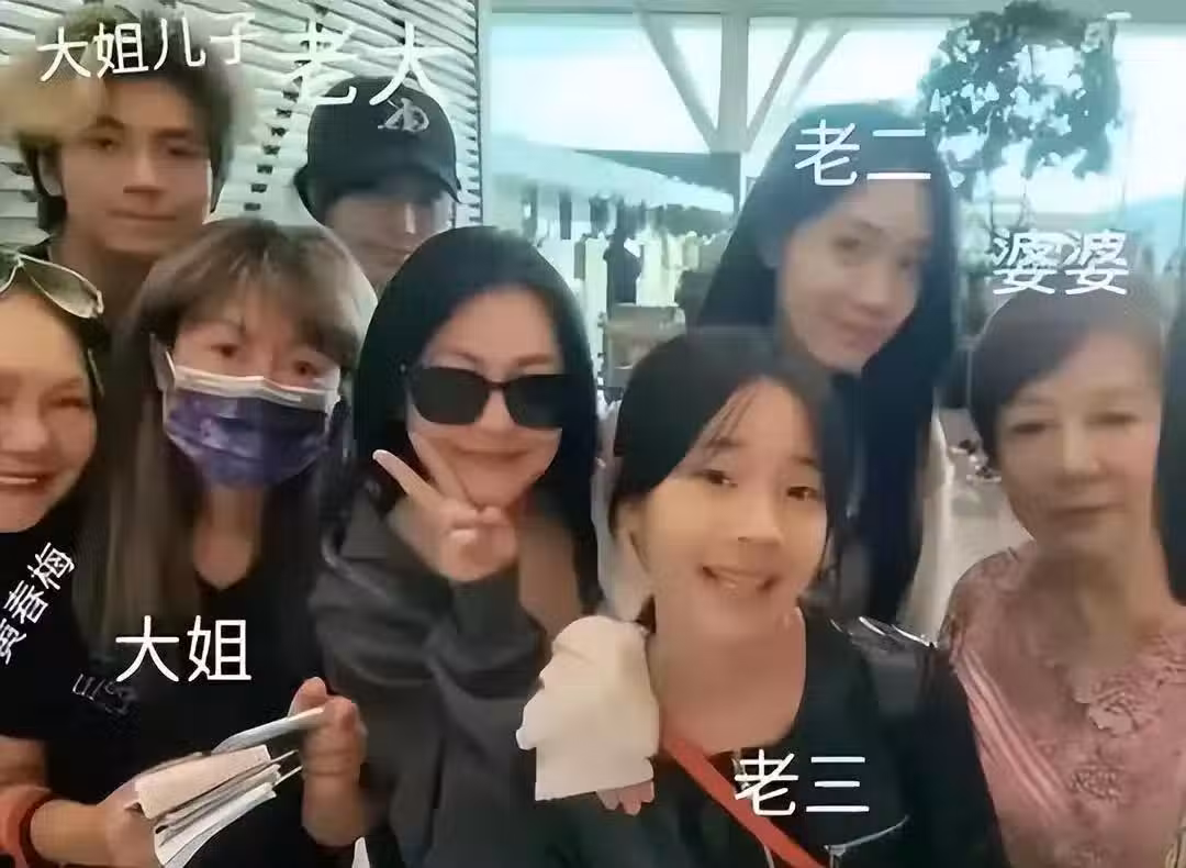 這是她們一起去旅遊的合影,小S的婆婆也跟著去,大姐家就只有她跟兒子兩人。黃春梅那個時候笑的很開心,可以看出她們還沒有意識到大S病重。