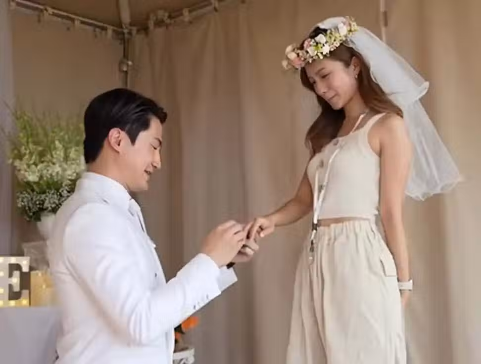 為了討女友歡心,郭子豪也是籌備了求婚計劃。看到男友在郵輪上穿著白色西裝、拿出鮮花和鑽戒單膝下跪的時候,鄧卓殷激動到落淚,火速答應了求婚。