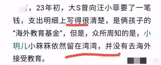 大S曾向汪小菲討要過一筆「海外教育基金」,也告訴汪小菲自己要帶著孩子搬走,有消息稱她本想把倆孩子轉到韓國上學,但計劃還沒有落實。