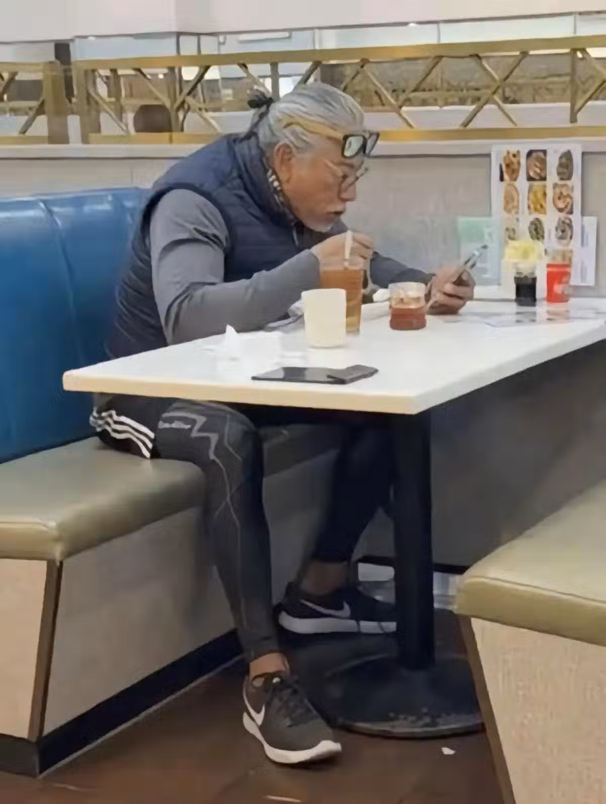 而張耀揚也認為自己過氣了,不會被認出來,更不會被打擾,是淡定地喝奶茶。