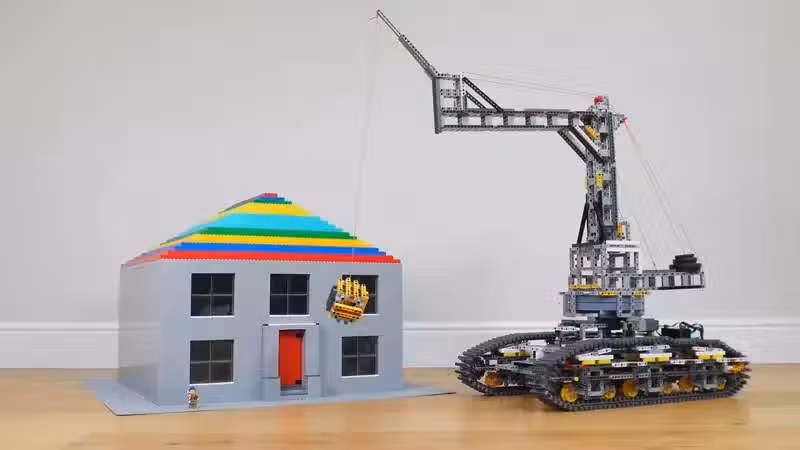 網友實驗用樂高大鐵球拆房子,唯一缺點就是機器有點承受不重