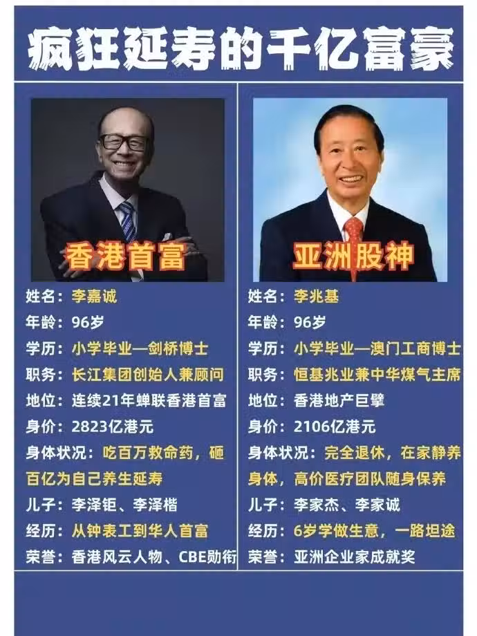當然了在香港李兆基去世肯定是一件大事,關於他的葬禮肯定和當年賭王何鴻燊差不多吧!到時候香港很多豪門和知名人士估計都會去哀悼,不知道到時候李嘉誠會不會去看望這個曾經的對手,另外李兆基的出殯儀式的舉行日期一切等家族安排妥當後,將會另行公布。兩人並稱「香港雙李」。