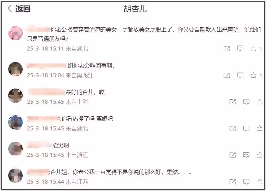 ——有人擔心胡杏兒又要自欺欺人,哪怕老公把手都放到別人身上了,還要堅持雙方是普通朋友,喊話讓胡杏兒看看熱搜,趕緊離婚吧。