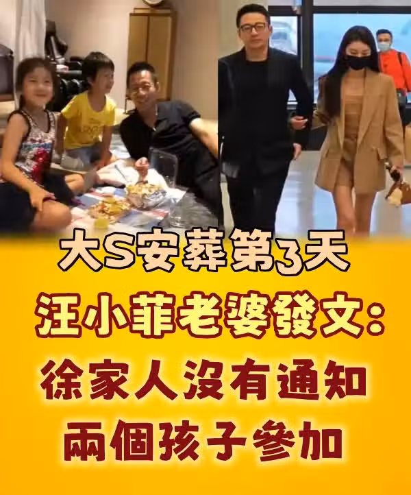 大S安葬第3天,汪小菲老婆發文:徐家人沒有通知兩個孩子參加