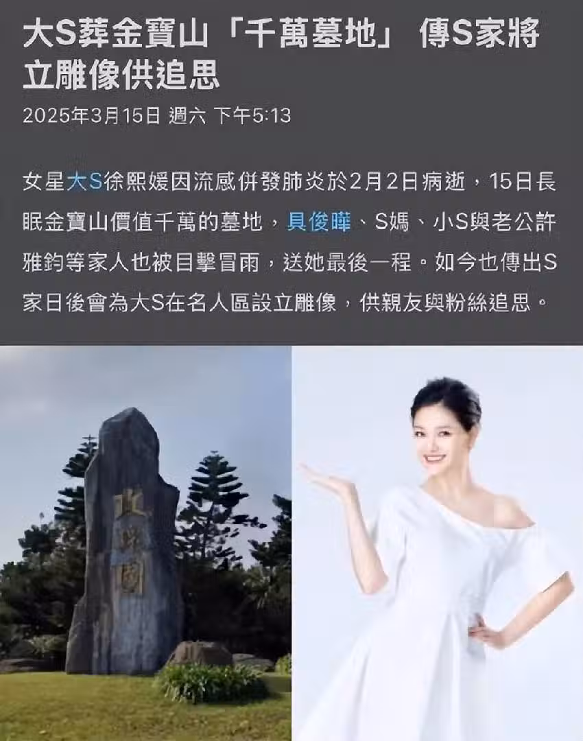 大S墓園雕像位置已確定!由具俊曄親手設計「大批粉絲」前往金寶山墓園參觀悼念!